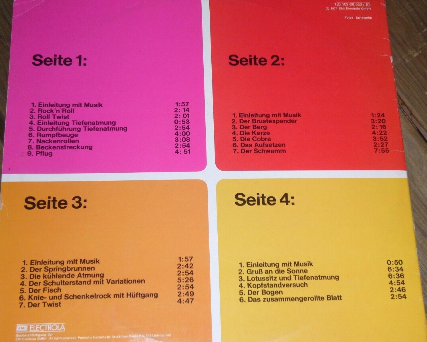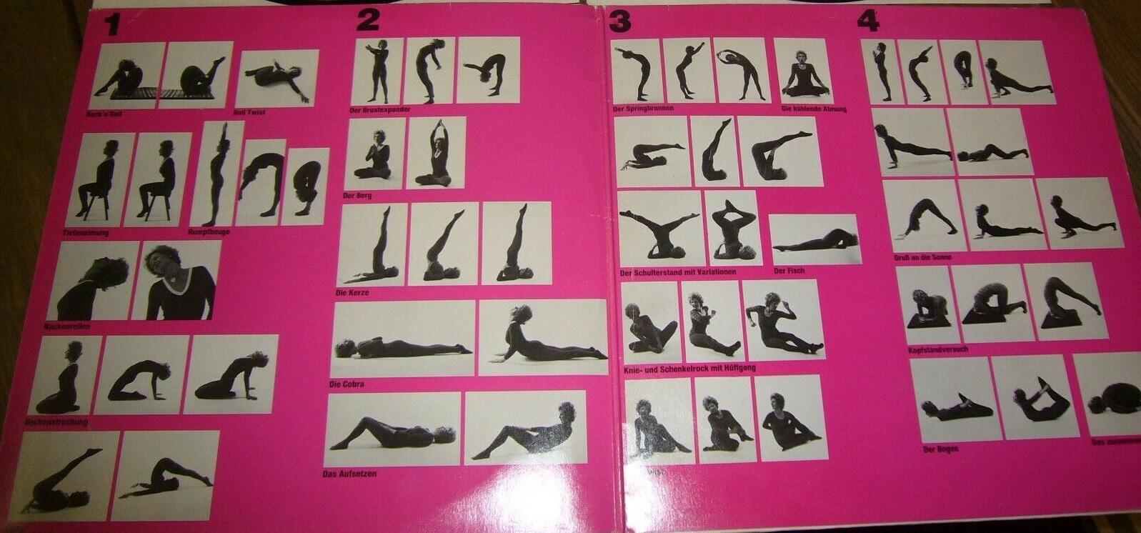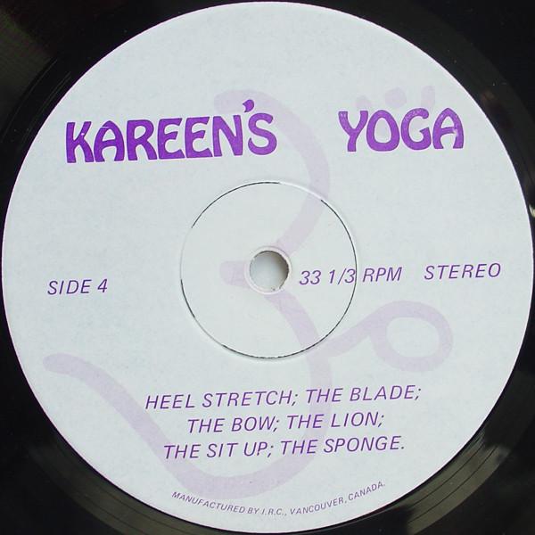 In the 1970s, Kareen was popular enough that a total of 4 different recordings of her yoga exercises were released (three in German and one in English). LPs were ideal for this, since they allowed for copious liner notes, which featured illustrated directions to each of the exercises.